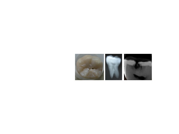 Objectives: To verify the existence of hidden caries and compare the diagnosis agreement among different examiners by visual, dental radiography and computed microtomography images of incipient dental lesions on the occlusal surface of extracted molars. Methods: Two hundred and fifteen teeth were examined visually and extracted from cadavers of adolescents with a mean age of 12 years. Eleven teeth which showed incipient occlusal caries were included in the study. Occlusal sites were examined both visually and by dental radiograph by 3 different dental practitioners and results were compared and validated independently by each examiner with computed microtomography, henceforth the gold-standard in current investigation. The coefficient of agreement was calculated by the Cohen's kappa test. Results: The agreement among examiners for the diagnosis by standard microtomography was excellent (K = 0.924) and moderate for both the visual (K = 0.515) and the radiographic (K = 0.583) examinations. Computed microtomography-produced images which allowed the examiners to visualize radiolucent areas unseen in previous radiographic images and visual exams, which showed anatomic communication between enamel and/or dentine to the external environment, not necessarily due to enamel collapse. Conclusions: Occlusal hidden caries was being over detected by clinicians because the of the limitations of the conventional dental visual and radiographic exam which indicate that those exams are not accurate enough to detect those lesions.