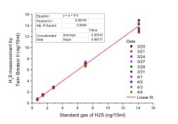 Objectives: A portable gas chromatograph named Twin Breasor IITM (iSenLab, Korea) has been introduced to measure VSCs in oral gas and breath recently. The standalone analyzer features an automatic sampling of target gas, a semiconductor gas sensor as detector, no need for special carrier gas and full automatic procedures of measurement. This study aimed to performance evaluation of Twin Breasor IITM (TB II) for VSCs measurements. Methods: The authors used a permeator to generate fresh H2S and CH3SH gases at each assigned concentrations. TB II measured five different concentrations of mixed H2S and CH3SH per day. The tests were repeated ten times for 15 days. Chromatograms of TB II were recorded via personal computer and analyzed to examine each peaks. Oral gases also have been measured and compared by TB II and a gas chromatograph with a flame photometric detector (GC-FPD). Results: The full automatic procedure facilitated objective and reliable measurement without mistakes in manipulation. Chromatograms proved each retention time was very reproducible and both peaks of H2S and CH3SH were separated well. The measurement time was as fast as 2 min 30 seconds. Measurements of standard VSCs indicated Adj. R2 = 0.9948 for H2S and 0.9872 for CH3SH (n=50), respectively. VSCs measurement from various oral gases and breaths by TB II coincided with results of GC-FPD, showing that TB II can determine VSCs in oral gases selectively and accurately. Conclusions: TB II is characterized as full automatic sampling and measurement, fast measurement time. The analyzer enables convenient and hygienic measurement with an accurate sampling. Repeated VSCs measurements indicate that TB II performance is very stable and reliable. Comparison of TB II with GC-FPD suggests that TB II is suitable to diagnose VSCs in oral malodor and breath.