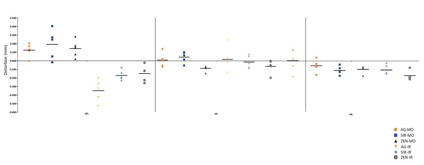 Mean global and linear distortions for all six test groups, µm (SD in parentheses)