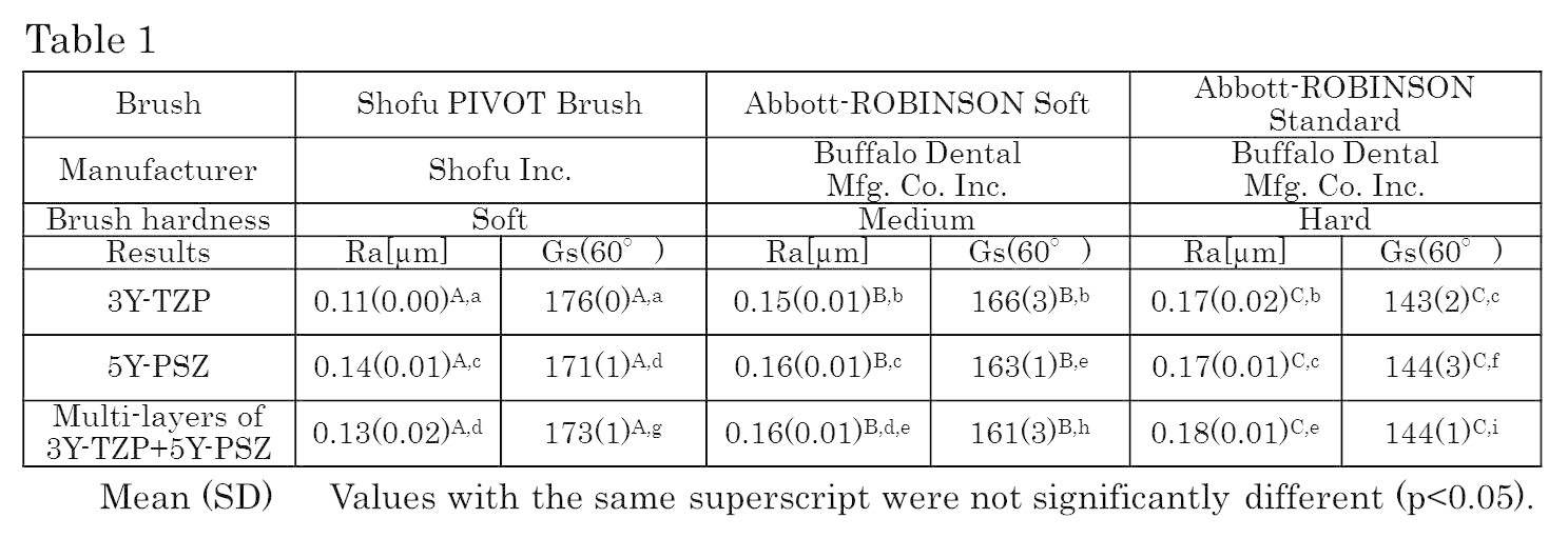Effect of Polishing Wax and Brush on Polishability of Zirconia