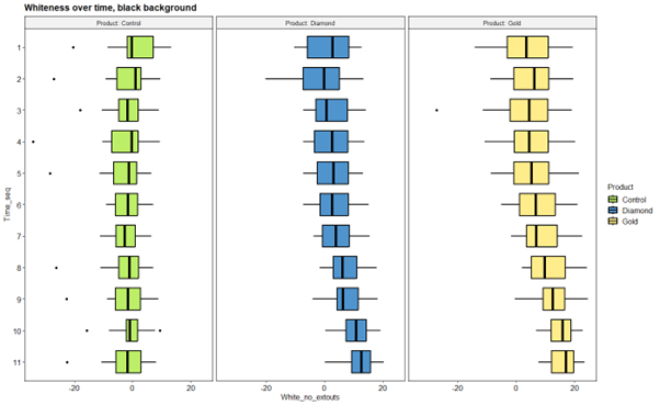 Objectives: This study compared tooth whitening effects of a hydroxyapatite-containing whitening gel (Diamond Serum) and a hydrogen and carbamide peroxide-containing whitening gel (Gold Serum, both from SNOW Cosmetics, LLC, Phoenix, AZ). Additionally, we used scanning electron microscopy to image etched root surfaces to look for occlusion of dentinal tubules following treatment. Methods: Extracted human anterior teeth were mounted in 9 gypsum arch forms (6 teeth per arch) and randomly assigned to receive 1 of 3 treatments: control (RO water), Gold Serum, or Diamond Serum. Prior to whitening treatment, root surfaces near the DEJ were etched for 20 seconds with phosphoric acid to open dentinal tubules. Baseline L*a*b* values of each tooth were measured in triplicate using a Vita Easyshade V spectrophotometer (Bad Säckingen, Baden-Wurttemberg, Germany) against black and white backgrounds. Each arch received 22 whitening treatments. Control samples were left on the benchtop for 21 minutes while Gold and Diamond samples were treated with their respective whitening gels and LEDs. Samples were stored at 100% humidity for at least one hour between treatments and following all treatments to allow rehydration. Total color change (ΔE), whiteness and yellowness index values were compared using one-way analysis variance (ANOVA) (α=0.05). Results: ANOVA showed significant ΔE difference between baseline and final treatment by group (black background: p-value<0.0001, F=21.1; white background: p-value<0.0001,F=13.34). Post-hoc Turkey testing showed significant differences between control and both treatment groups. Repeated measures ANOVA showed significant interaction between time and treatment (control, Gold, Diamond) for both black and white backgrounds. SEM imaging demonstrated slightly higher tubule occlusion in the Diamond Serum group. Conclusions: Both Gold and Diamond Serums produced greater ΔE than the control group but were similar to each other. Control groups did not exhibit much change in yellowness and whiteness but the gold and diamond groups but exhibited change in these variables.
