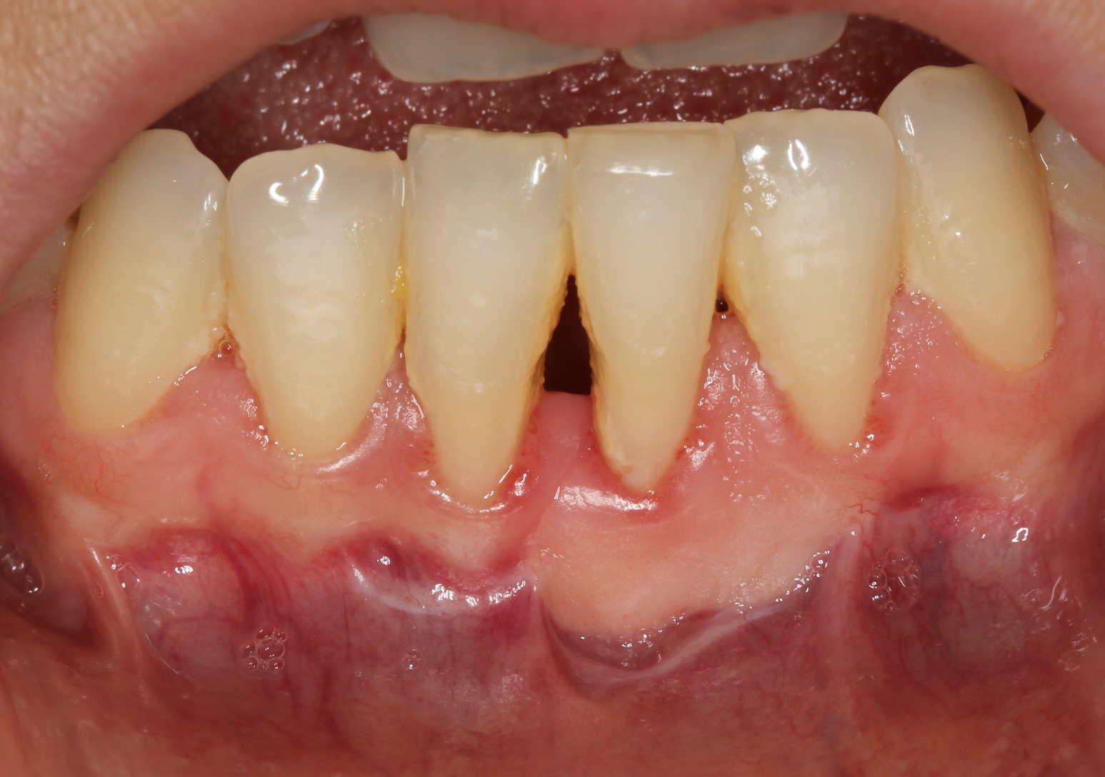 Objectives: Low level laser therapy (LLLT) is widely used during the post-operative period to accelerate the healing process. It promotes beneficial biological action on neovascularization with anti-inflammatory and analgesic effects. The aim of this clinical study was to compare the action of a low-intensity diode laser on the healing process by assessing free gingival graft (FGG) dimensional changes in individuals undergoing free gingival grafts. Methods: Four systemically healthy and non-smoker patients were referred to Abant İzzet Baysal University, Faculty of Dentistry, Department of Periodontology. Graft was harvested from palate and periodontal dressing wasn’t used. After surgery patient received LLLT using a 820nm diode laser, with output power of 1 W. immediately after surgery, on the first day, on the 7th day and lastly on the 14th day. Probing depth and FGG dimensions (horizonto-superior (HS), horizonto-inferior (HI), and vertical (V)) were assessed by using digital caliper at the same reference point and recorded before surgery, 1 and 3 months postoperatively. Results: Although in this study we didn’t use periodontal dressing, healing was uneventful and patients' discomfort was minimum. Free gingival graft with assist of low level laser therapy show promising result for all following intervals. Graft dimensions were 10.00mm, 11.75mm and 6.25mm before the surgery; 8.5mm, 12.37mm and 5.87mm within the first month; 8.33mm, 9.66mm and 5.33mm within first three months for HS, HI and V; respectively. Normality of distribution was tested with the Shapiro–Wilk procedure. Kruskal-Wallis was used for the intergroup comparisons. There were no significant differences between the time interval. Conclusions: The results showed that LLLT was an effective adjunctive treatment in promoting revascularization during early healing of FGG. In addition these results may support the idea of low-level laser therapy as a supportive therapy in patients receiving free gingival graft.