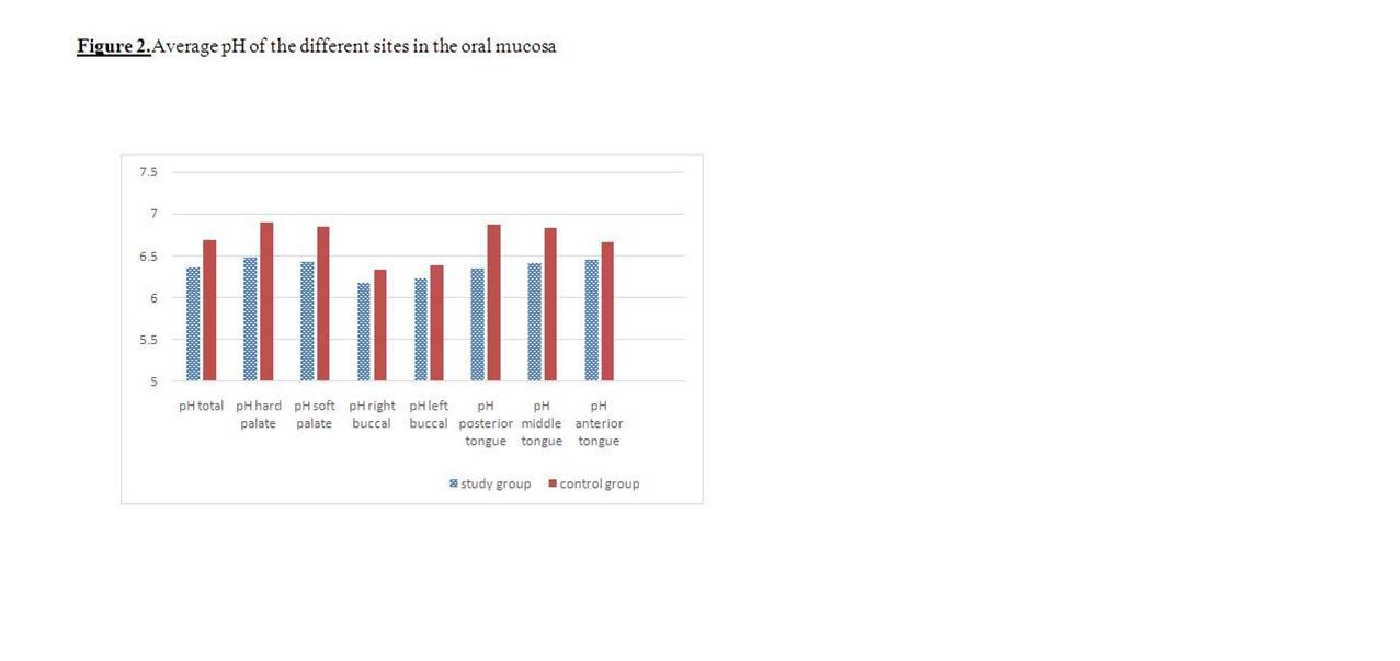 Objectives: This study aimed to characterize pH and dental status of Israeli children who suffer from sleep disordered breathing. Methods: 43 children aged 3-11 years: 22 children in the study group and 21 children in the control group were examined. The following data were assessed: Plaque index (PI), gingival index (GI), dental calculus formation, DMFT index and oral surface pH at 7 sites. Statistical analysis was performed with SPSS™ software (version 22, IBM Corporation, Armonk, New York). Results: A significant difference (p= 0.008) was found between the groups in the total mean mucosal pH of all sites. Moreover,a significant difference was found between the groups in the average pH of hard and soft palate and in the posterior and middle tongue. The acidity at these sites was higher in the study group as compared to the control group. There was no statistical difference between the groups regarding the PI, GI, dental calculus formation, DMF Index, and the pH score at right and left buccal mucosa and anterior tongue. Conclusions: A statistically significant lower average mucosal pH level was measured in the study group as compared to the control group. This may be explained by mouth breathing which is characteristic of OSA.