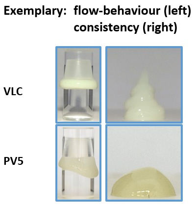 Objectives: A simple and controlled procedure for luting restorations and the comfortable removal of any excess material are essential for clinical success. Therefore a flexible and thixotropic consistency of luting materials is a big advantage. In the following study, the post-elastic force and flow-behaviour of different luting materials were compared to Variolink Esthetic. In addition, the consistency of these materials was analysed. Methods: Post-elastic force was measured using PMMA-model-crowns which were exactly half-filled with cement. The filled crown was then pressed with a crosshead-speed of 120mm/min. onto a PMMA-stump until a layer thickness of 0.5mm was reached (n=5). The force was measured using a Zwick-machine. Flow-behaviour was followed with the same model-crowns and snags (1.00g cement) for 5min. and photo-documented. Consistency was observed by pressing out 0.30g onto a mixing-block and photo-documented after 5min. Statistical analysis was carried out for post-elastic force using Tukey’s range-test to determine statistical differences (p<0.05). Results: The post-elastic force of VDC and VLC exhibited significantly lower values compared to the other products, meaning a significantly lower force is needed to seat restorations. Concerning flow-behaviour, only RXV, CAA, N3A and N3V showed good results comparable to VDC and VLC. Regarding consistency, only RXV, N3A and N3V demonstrated similarly favourable results. Conclusions: Although VDC and VLC both exhibit a very stable, stiff consistency, they hardly cause any resistance when seating a restoration, due to high flowability properties. These luting materials exhibit a flexible and thixotropic consistency.